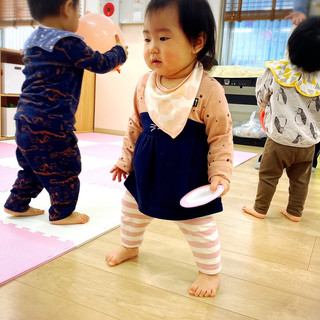 お気に入りの風船を持って歩いたり、飛ばすと追いかけたり、とんとん叩いて楽しんでいましたよ。