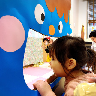 今日は0.1.2歳合同で過ごしました。今日は節分です👹!まず節分にまつわる「まめまきバス」と「豆まきまかせて」という紙芝居を読みました。